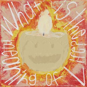 2017年公開の“A Dog’s Purpose”と言うアメリカ映画を見た際に描いた作品だ。ベイリーと言う犬が転生を繰り返しながら、様々な主人との出会いや別れを経験し、自分自身の人生の使命に気づいていくストーリーだ。誰しもがあると言われる使命。僕もある時、自分の使命はこれだと気づいた経験がある。それは、ある辛い経験をした時、僕の心の中で燃えていた火が消えかけそうになった。そんな時、周りの人たちが、愛という名の火種を分けてくれたお陰で、僕の心の火は消えることなく燃え続けることができた。僕が沢山の人からの愛で立ち直れたように、今度は僕が愛を必要としている人に分け与えたい。それが僕の使命なのではないかと思ったのだ。
