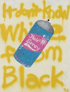 1960年代のアメリカを背景にしたミュージカル映画『ヘアスプレー』からインスピレーションを受けた作品だ。本作品の主人公であるトレイシーは、自分の夢を追いかけながら、自らの容姿や人種差別などに立ち向かい、見事夢であるコニー・コリンズ・ショーに出演する。現代に生きる僕たちも、困難に立ち向かい、このスプレーで世界をカラフルに彩り、スプレーに描かれたルドベキアの花言葉のように、公平な世の中になってほしいという願いを込めた作品だ。